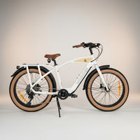 Le Woodee Beach Cab 26 incarne l’ADN de la marque depuis sa création en 2014 et se distingue par un design directement inspiré des beach cruisers californiens, revisité avec une approche moderne et fonctionnelle adaptée à l’usage du vélo à assistance électrique. Son esthétique repose sur un équilibre entre lignes fluides et structure robuste, avec un cadre aux courbes galbées étudiées pour offrir une position de conduite naturelle et confortable, favorisant un dos droit et une posture relâchée sur les longues distances.